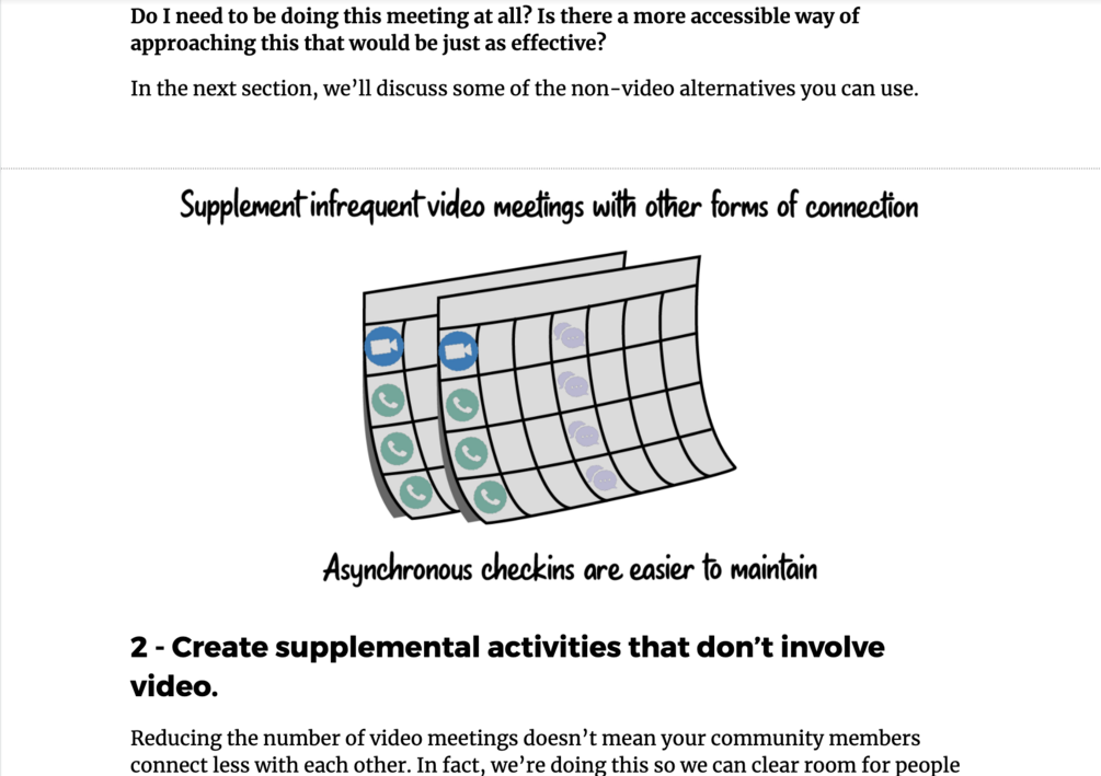 The trick is to shift your mindset. Too many online meetings are just Zoom versions of offline meetings, but people's needs and constraints have changed. If you can step back and design gatherings that match what people are willing and able to participate in, you can create something more accessible and more compelling.
